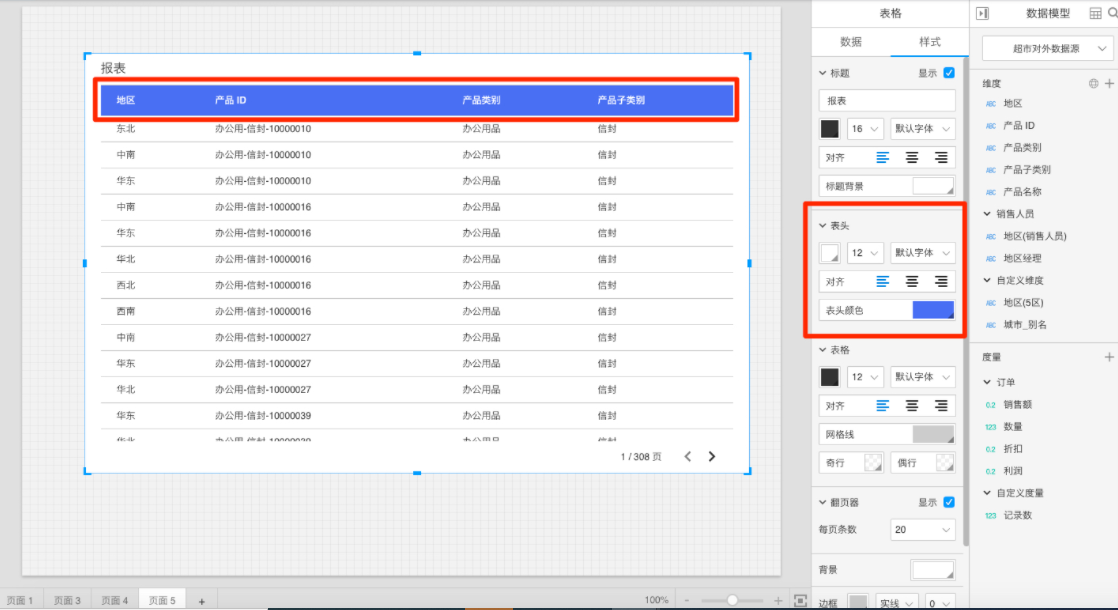 表头指图中红框内部分;可设置该区域的文字颜色、字号、字体对齐方式;也可以设置表头颜色。