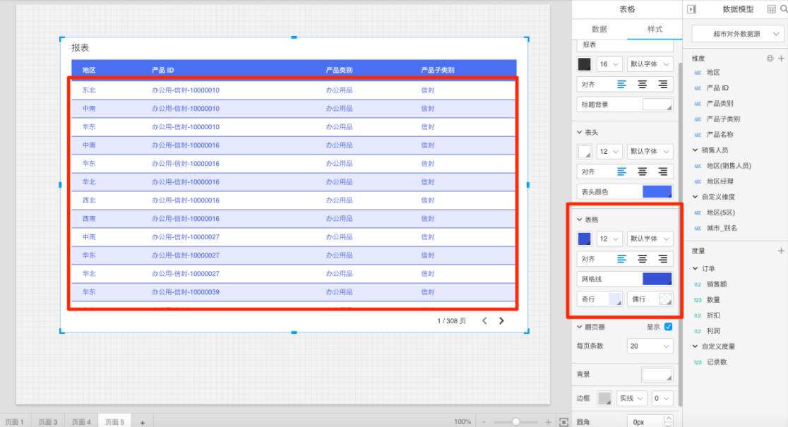 表格区指图中红框内部分;可设置该区域的文字颜色、字号、字体对齐方式;网格线颜色;也可设置该区域的奇行颜色、偶行颜色。