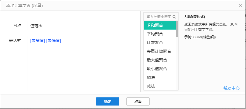 2.在弹出的新窗口中,输入字段名称值范围,计算字段内容为:最大值-最小值。