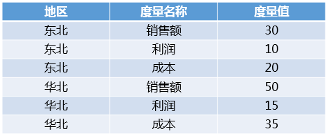 度量名称、度量值,是平台生成的字段,在用户的原始数据中并不存在。其中,度量名称是字符串类型,存储的是数据表中所有度量的名称。度量值则是每个度量对应的取值。