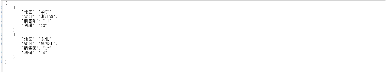 {"地区": "东北","省份": "黑龙江","销售额": "17","利润": "14"}]