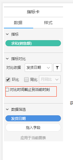 比如 在筛选中,对发货日期勾选了今天,勾选了环比,勾选了对比时间截止到当前时刻: