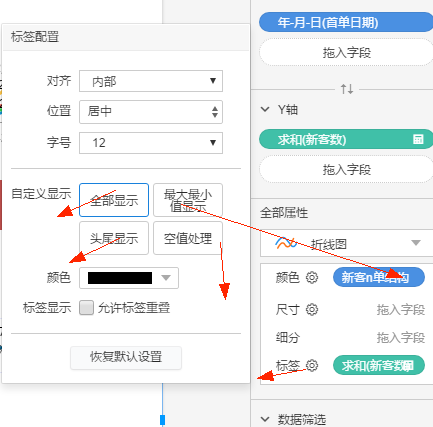 目前AxisBI有4种显示方式,但是头尾显示和最大值最小值显示,不能同时出现。
