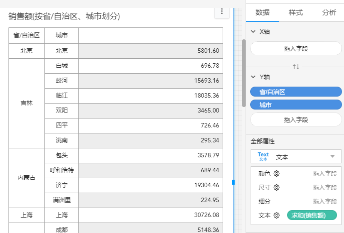 但是如果抽取情况下,可能相同的省份,不同的城市会分两条展示。如上图就会出现两个吉林。