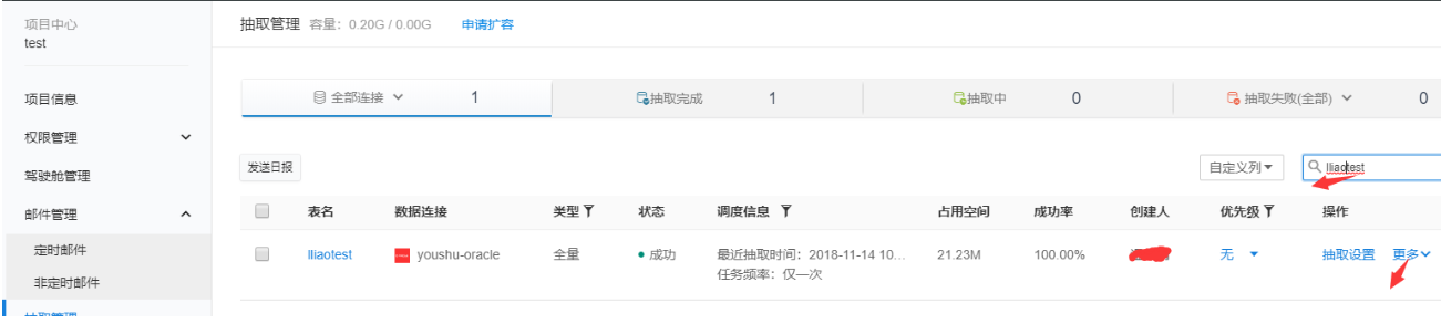 5.可以在项目管理的抽取管理中查看。输入抽取名称,进行查找。