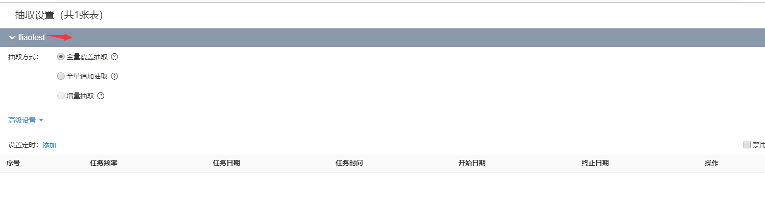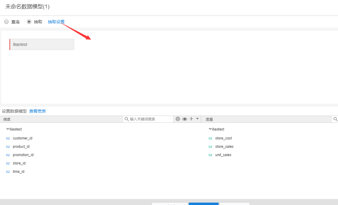 3.此时会跳转到对应的数据模型部分。查看抽取设置。