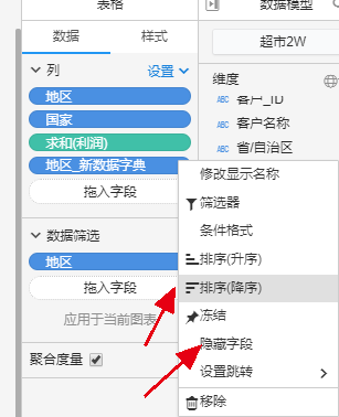 这时如果觉得这个计算字段不想显示在二维表中,可以选择隐藏。