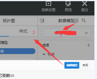 此时点击下图中数据模型的 “预览宽表”(1部分)会弹出宽表。如下图的2,点击”编辑模型”。