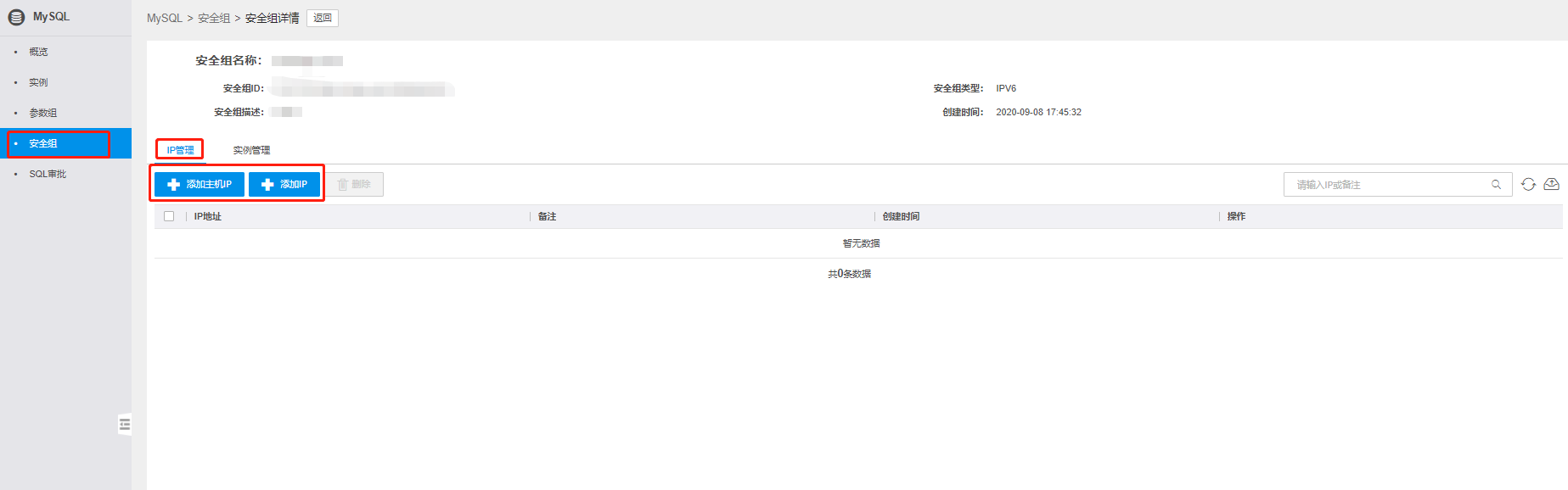 创建IPV6安全组后,进入安全组详情配置所需的IP。