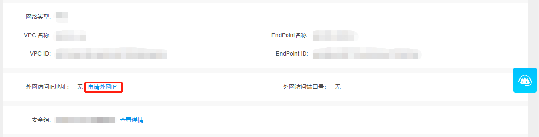 当实例具备IPV6地址时,点击申请外网IP即可为实例获取外网IPV6地址。