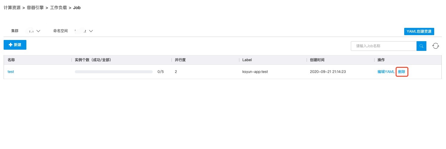 在Job列表页面,可以通过YAML创建资源新建Job,也可以通过Job列表中的编辑YAML更新已有Job的配置。
