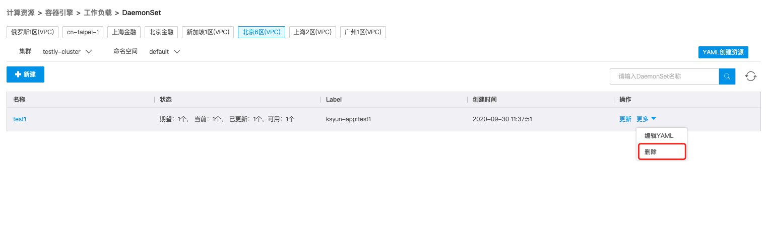 选择需要新建DaemonSet的集群,进入该集群操作页面。
