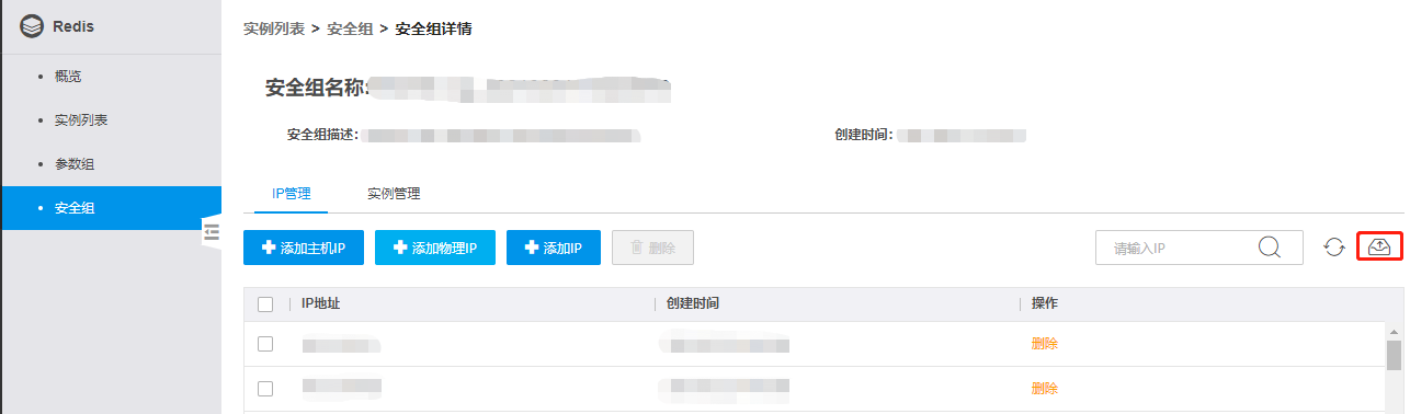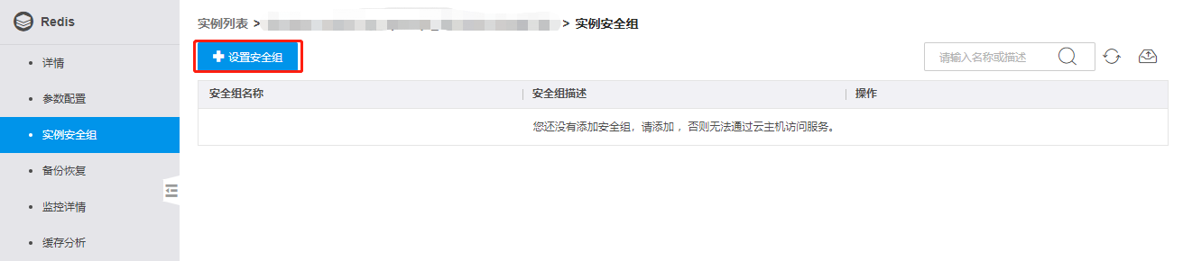 在Redis控制台的左侧导航栏,点击安全组,进入安全组页面。