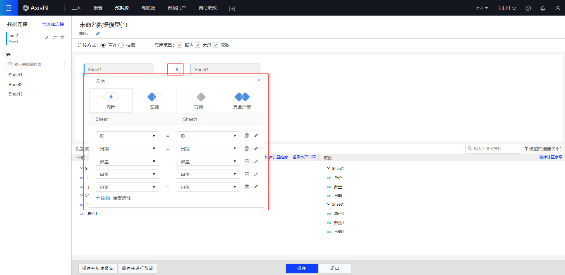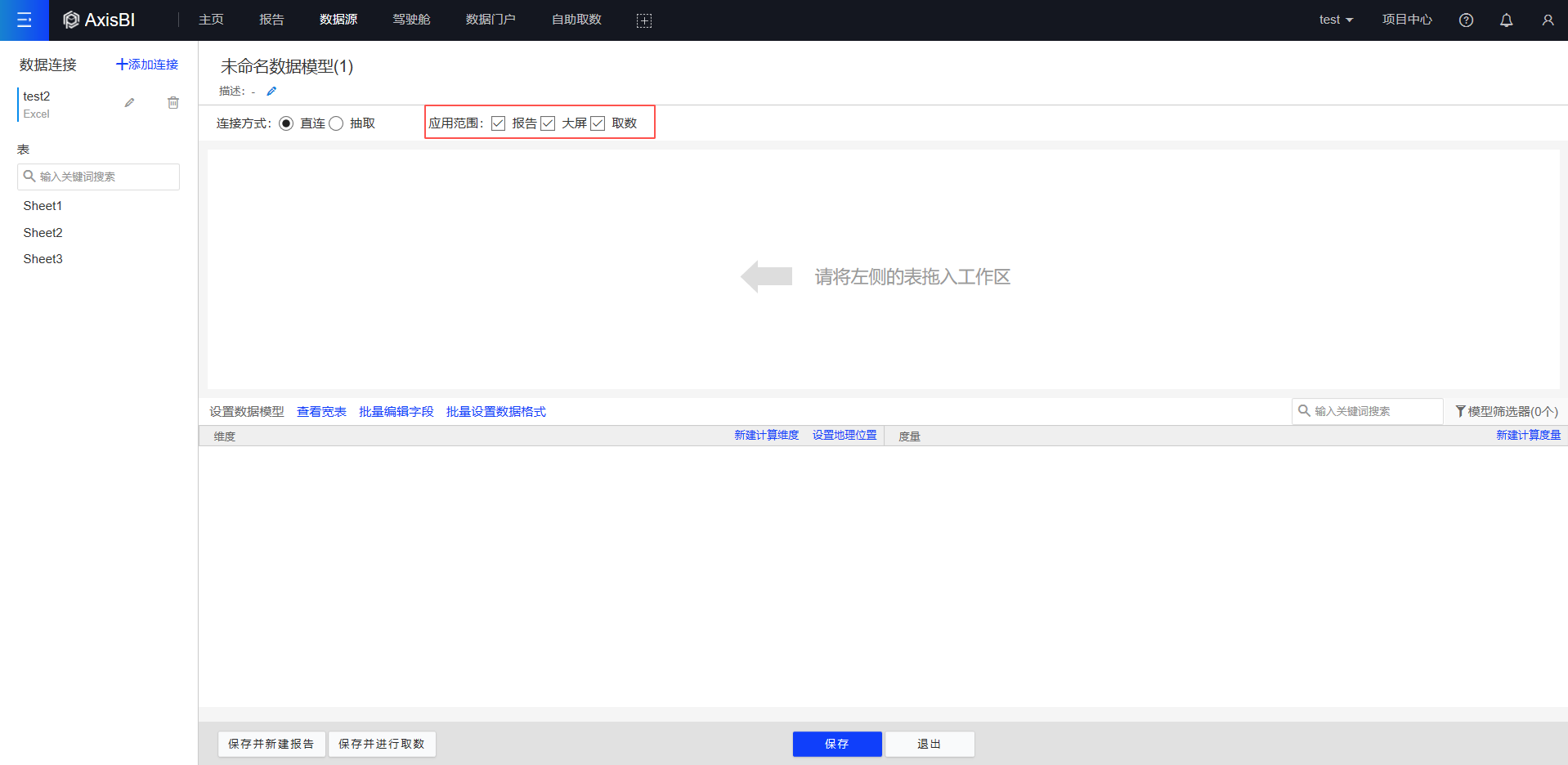 增加模型应用范围配置项,勾选后该模型则应用于制作报告、大屏及取数。
