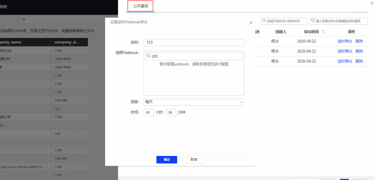 2) 若保存在公共查询时,可支持定时导出,查询结果与导出详见查询结果区。