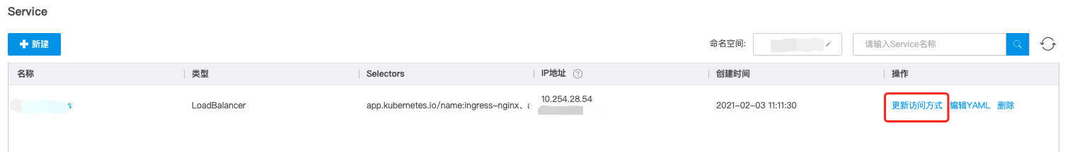在Service列表页面,点击更新访问方式,支持对Service的访问方式及其他访问配置进行更新。