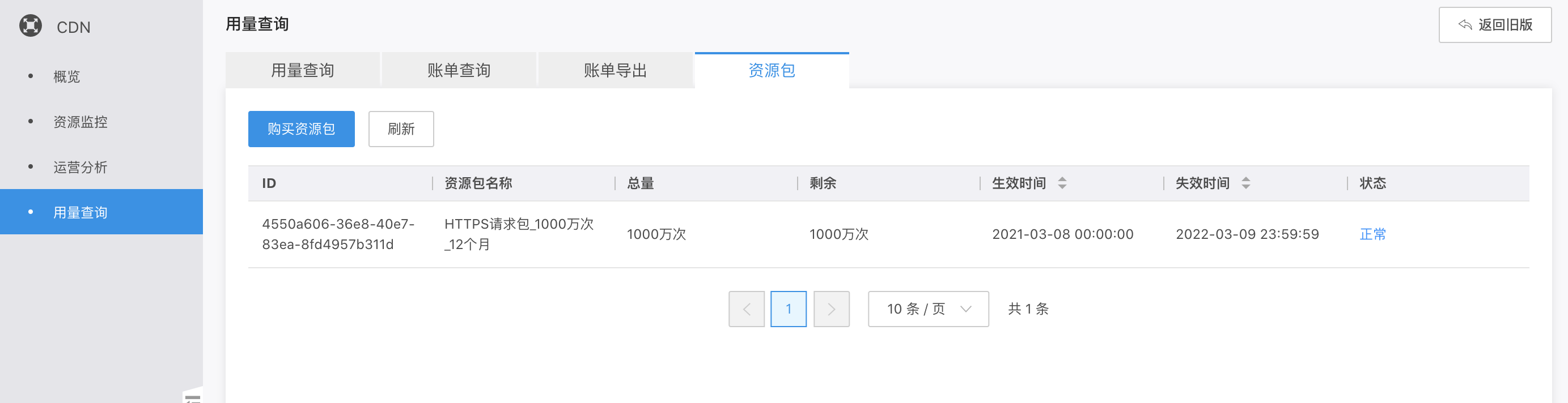 如果您已购买CDN资源包,则可以查看资源包详情,并根据实际情况,合理使用资源包。