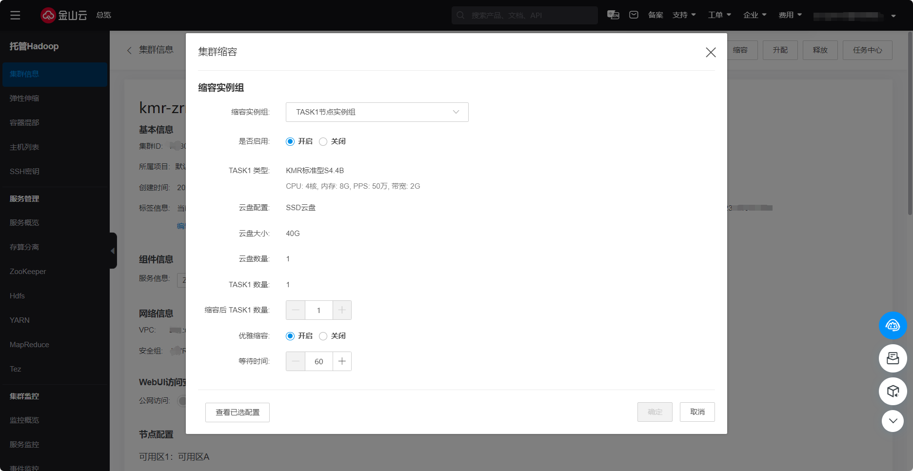 通过金山云KMR的节点缩容功能,可以完成Task节点、Gateway节点数量的缩减或关闭Task节点、Gateway节点。