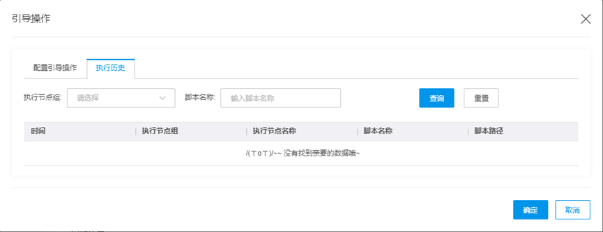 默认展示集群中全部节点执行过的脚本;可根据执行节点组或者脚本名称查看符合条件执行历史。