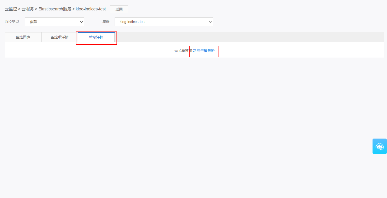 4.进入云监控平台,点击策略详情 > 新增告警策略,可配置告警策略。