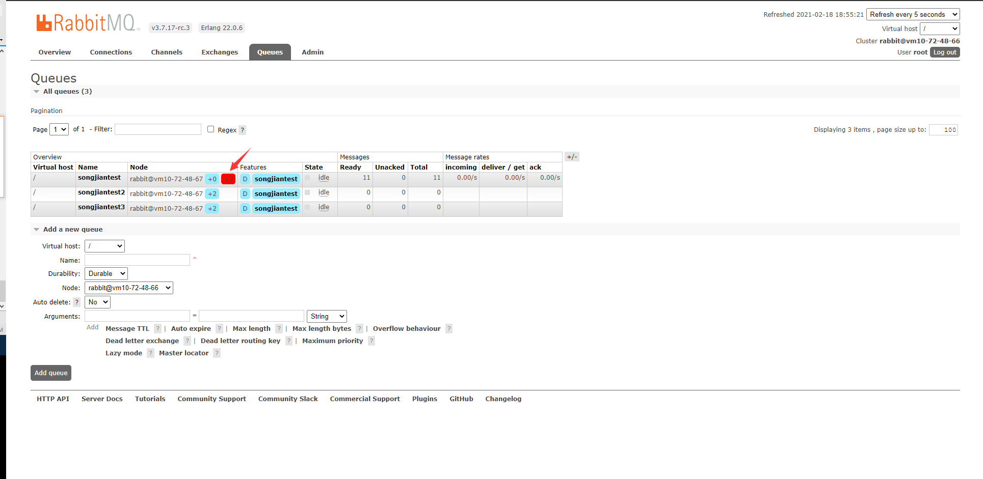 5.当同步完成后,进入queues的界面,需要同步的队列的显示效果与其他队列相同