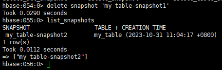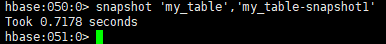 删除快照:命令为:delete_snapshot 'my_table-snapshot1'