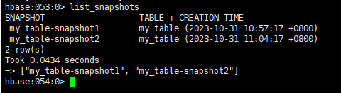 snapshot 'my_table','my_table-snapshot1'