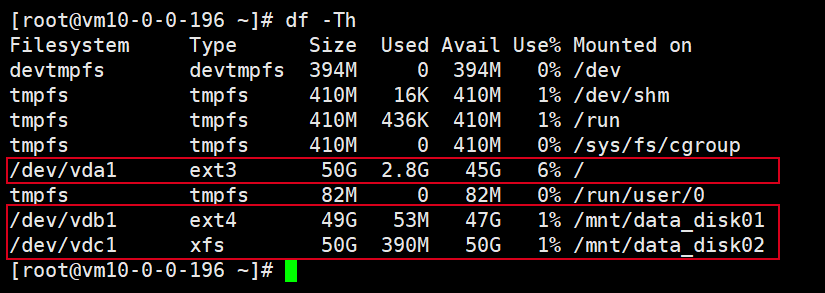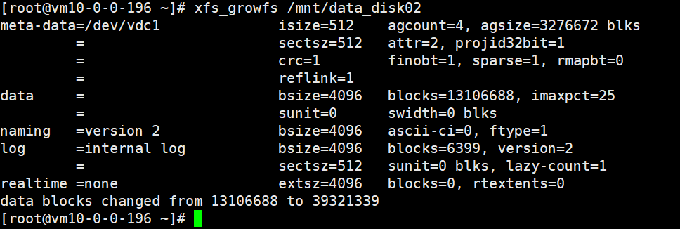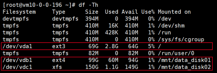 /dev/vdc1 | xfs | 已挂载至/mnt/data_disk02 |