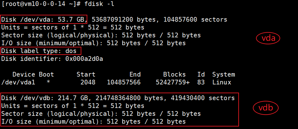 /dev/vda,系统盘,云硬盘容量为50GB | /dev/vda1 | MBR分区,分区容量为50GB |