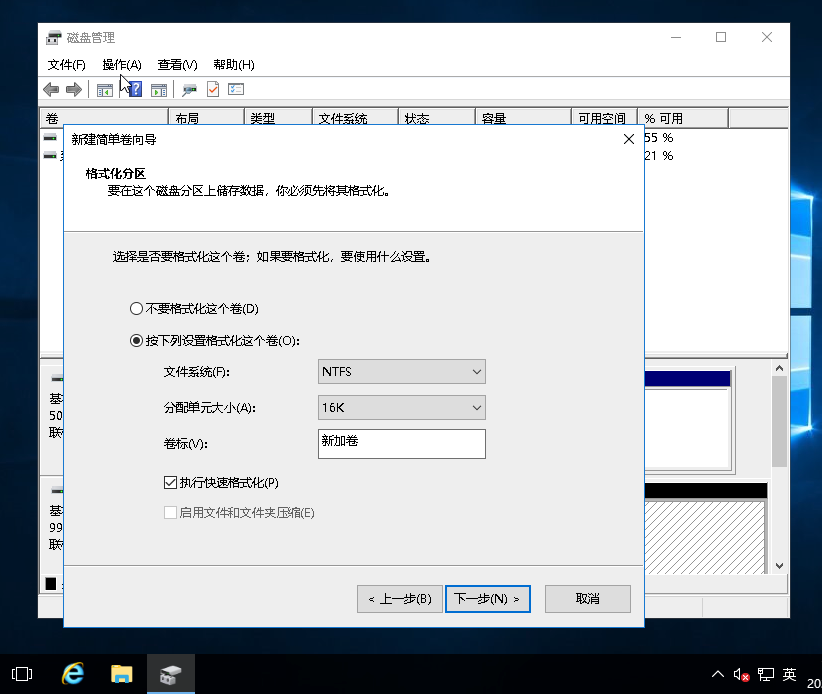 在新建简单卷向导对话框中,根据向导完成初始化操作。