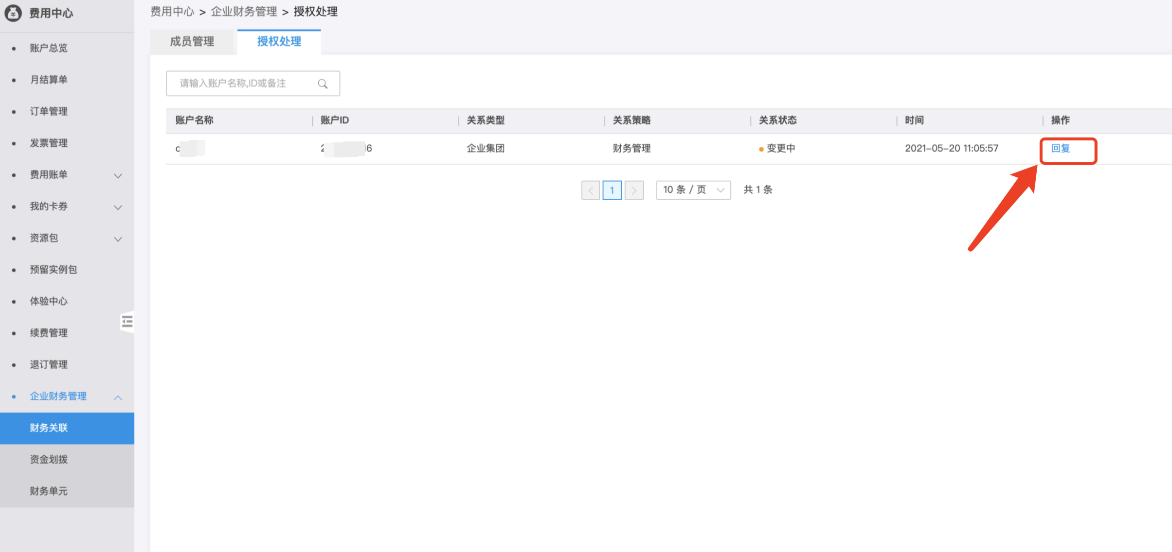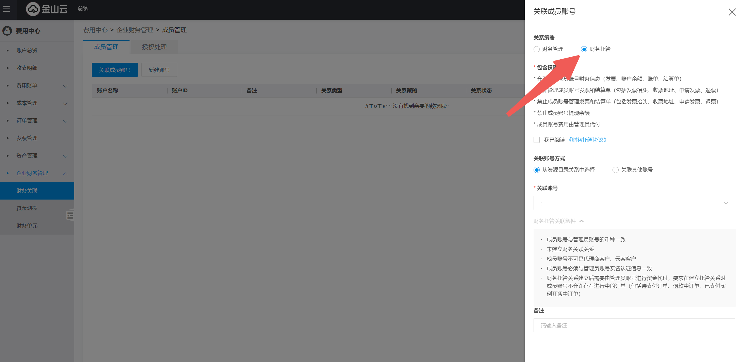 • 关联账号-财务托管