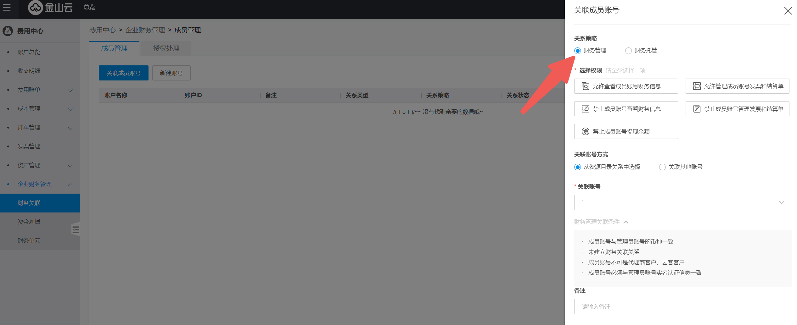 • 关联账号-财务管理