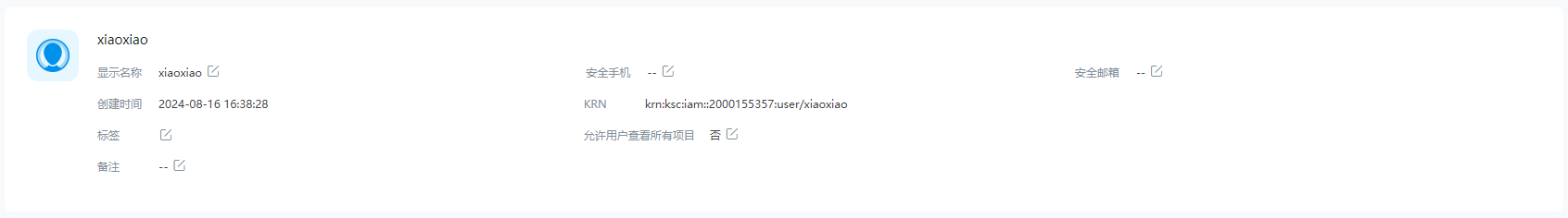 在用户详情的用户信息区域,选择目标修改对象,单击编辑。可修改内容如下: