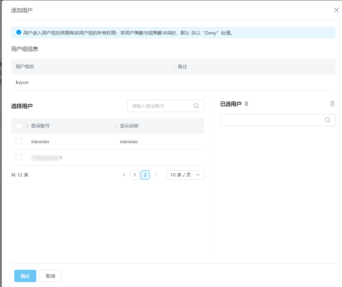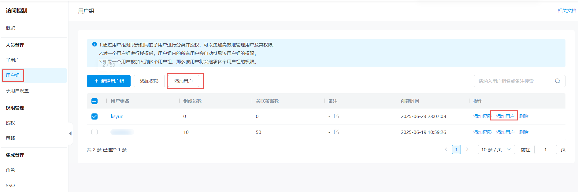 在用户组列表页,单击目标用户组操作列的添加用户。
