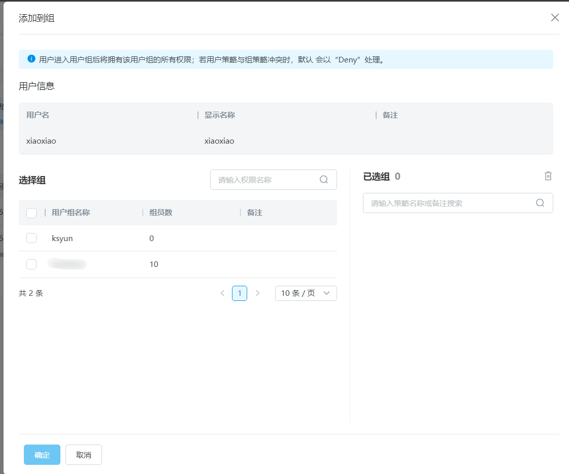 当子用户添加到用户组后,子用户将拥有该用户组的所有权限。