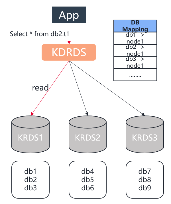 KDRDS架构如下图所示,应用通过代理实例访问数据库,代理实例和RDS实例均可根据业务负载弹性伸缩。