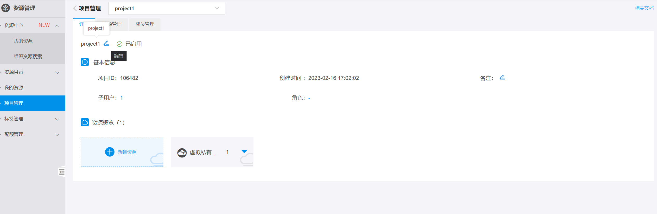 在项目详情页签中单击项目名称或备注旁边的编辑图标。