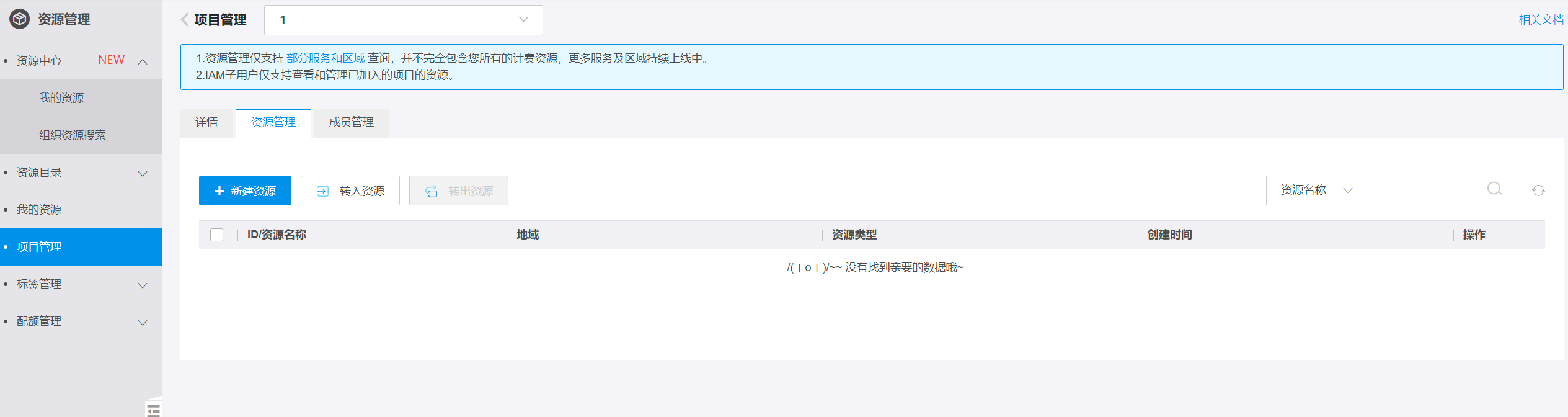 使用云账号管理员或拥有项目管理权限的IAM子用户登录控制台。