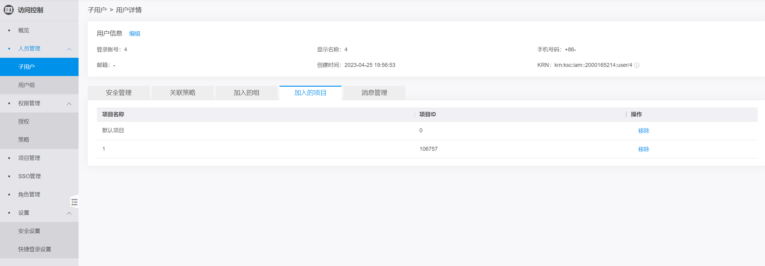 如果您想快速为子用户添加所有项目的资源管理权限,包括未来新建的项目,您可以使用此功能。
