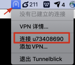- 点击桌面最上方图标,连接uxxxxxx