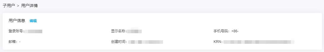 登录身份与访问控制页面,点击【子用户】,即进入【子用户】页面。