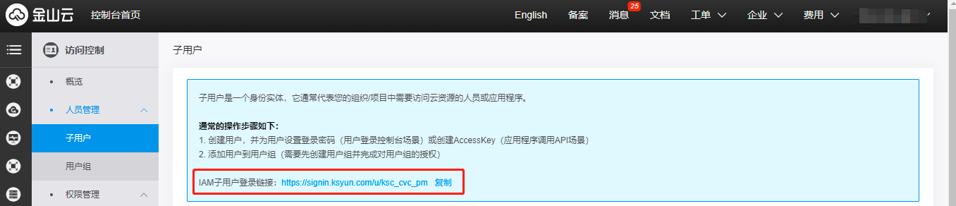 子账号用户即“IAM用户”。子账号用户本身无需注册金山云,开通云直播服务,子账号由创建者将其添加至用户管理列表中。