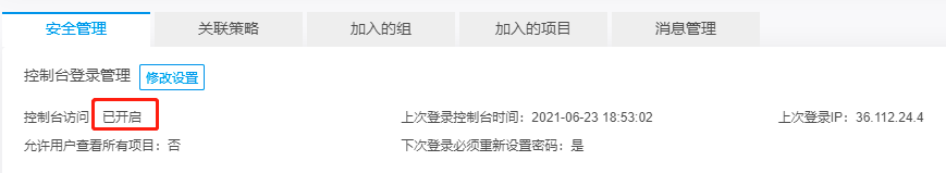 • 启用/禁用用户自助管理密码(拥有AdministratorAccess权限的子用户不受此功能开关限制);