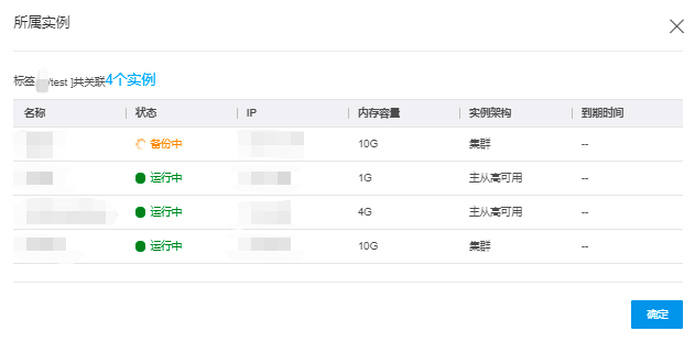 1. 点击标签名称,弹出所属实例窗体,显示同一标签实例的数量及实例列表。