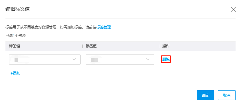 1. 若您需要删除标签,在编辑标签值页面,点击标签右侧的删除,点击确定,即可删除成功。