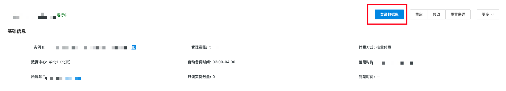 点击实例名称进入详情页,点击登录数据库,进入数据库登录页面。