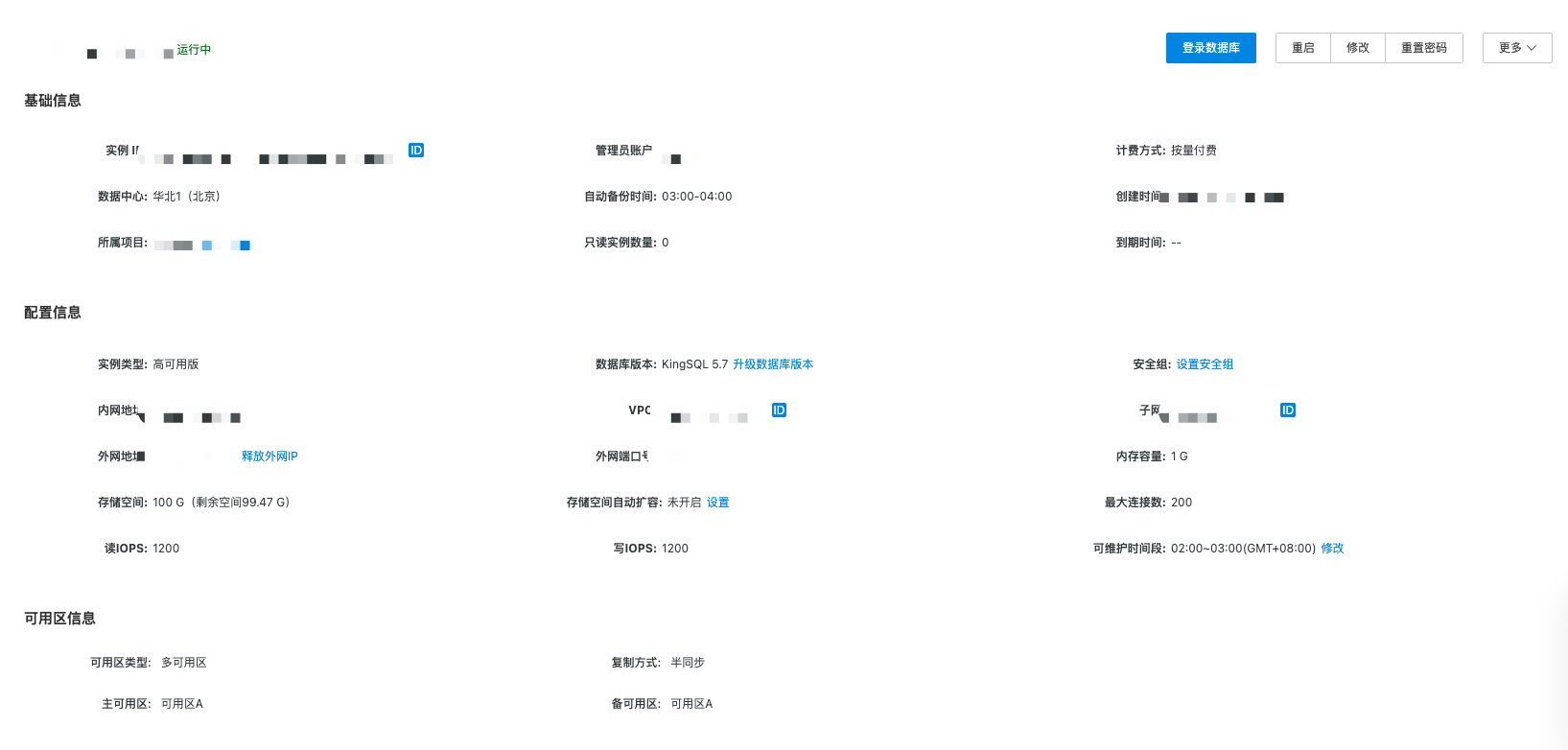 通过实例详情页,可查看当前实例的相关配置信息。