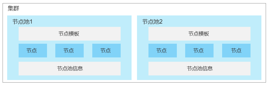 节点池可以包含一个或多个节点,您可以根据实际使用情况在集群中创建不同大小和类型的节点池,来分组管理这些节点。每个节点池对应独有的配置,您可根据实际使用情况灵活配置节点池信息、节点模板配置。节点池整体架构如下图所示: