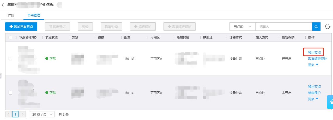 - 选择需要移出节点池的节点,点击移出节点,如下图所示: