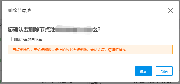 注:节点删除后,系统盘和数据盘上的数据会被删除,无法恢复,请谨慎操作。